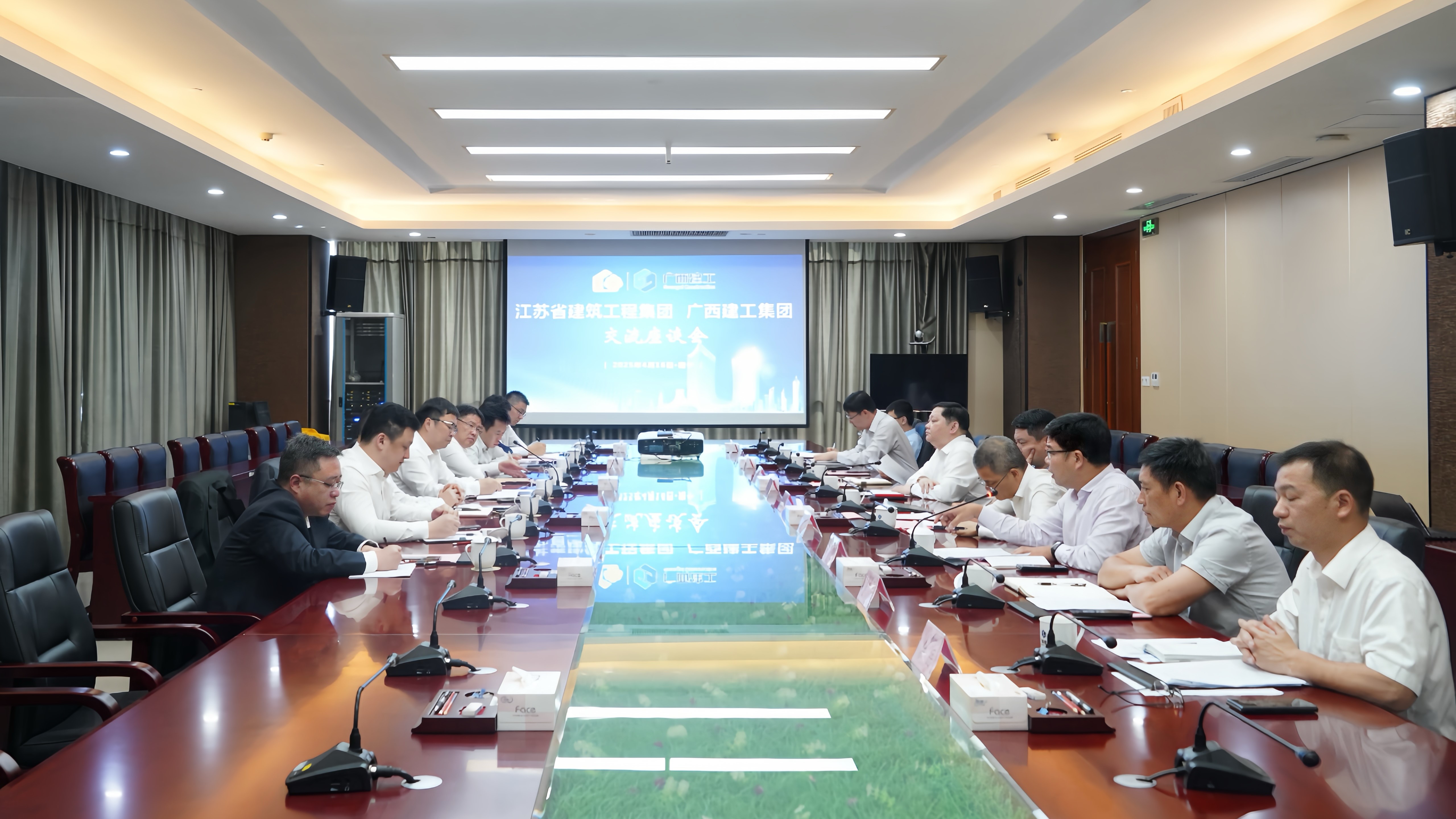 蔣寧對廣西建工的熱情接待表示感謝,并簡要介紹江蘇省建近期生產經營情況。他指出,當前建筑市場持續(xù)變化,行業(yè)都面臨著一些共性的挑戰(zhàn),廣西建工圍繞全年目標,在平臺建設、清收清欠、融資信貸、風險化解等方面的優(yōu)秀經驗以及搶抓政策和市場新機遇、應對行業(yè)深度調整的有效策略值得江蘇省建借鑒和學習。希望雙方發(fā)揮各自優(yōu)勢,持續(xù)開展更深入的交流學習,加強溝通對接,加大業(yè)務合作,實現(xiàn)經驗共享、互促提升,攜手共贏發(fā)展。