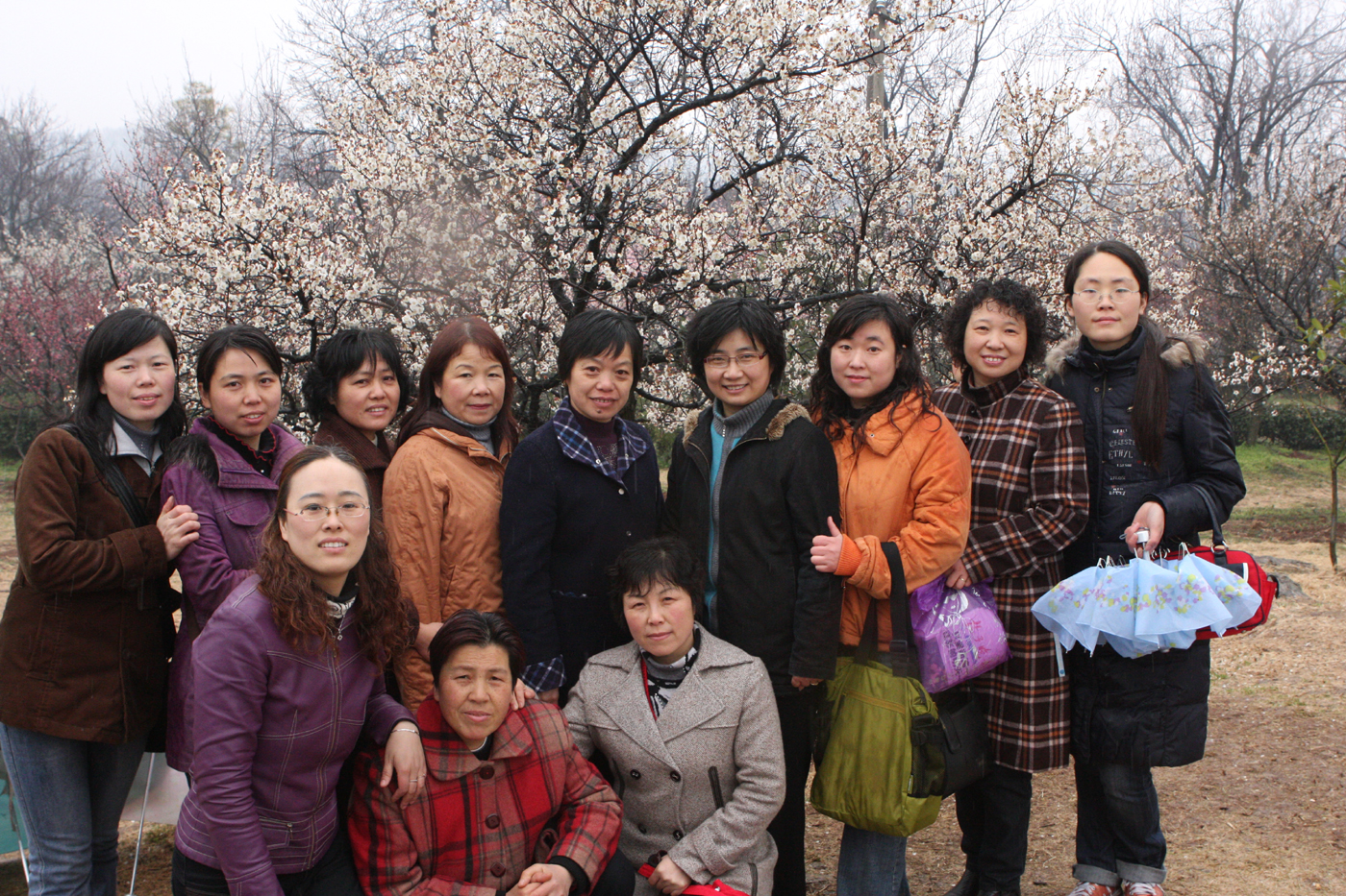 在春雨的滋潤下,梅花山上萬株梅花蓄勢待發(fā),含苞初綻;山頂的部分梅樹和一些早梅已經花開滿枝。女職工們在這歡樂的節(jié)日里,欣賞著梅花山春意盎然的景象,盡情地享受大自然的美好風光,斜風細雨絲毫沒能減少大家歡樂的情致。
