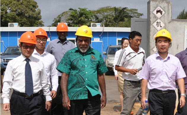當(dāng)?shù)貢r(shí)間8月8日上午,瓦努阿圖共和國總理納圖曼在中國駐瓦努阿圖大使謝波華陪同下,來到集團(tuán)承建的中國援瓦國家會(huì)議中心工地視察。瓦總理府總司長、國家會(huì)議中心項(xiàng)目協(xié)調(diào)委員會(huì)主席、基礎(chǔ)設(shè)施部首席工程師等政府高官以及我駐瓦使館經(jīng)商處負(fù)責(zé)人楊旭紅陪同參觀。